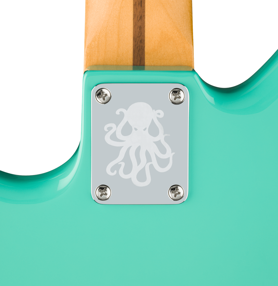 This Limited Edition release will be gone before you blink.. (Get it?!) Grab yours today and own the exact model Mark Hoppus currently plays onstage with Blink-182. For starters, you’re getting a rock-solid and utterly curvaceous alder Jaguar body. Add to that a maple neck with a custom “C” profile, beautiful slab rosewood fingerboard and elegant white pearl dots, topped off with a set of lightweight vintage-style tuners. The 4-ply white pearloid pickguard is fitted with Seymour Duncan SPB3 Quarter Pound split-coil P Bass pickups custom mounted in reversed positions. For stellar tone and rock-solid intonation, this Jaguar bass features a HiMass Vintage bridge. The custom neck plate features Mark’s “Hi My Name is Mark” octopus logo, as does the included deluxe gig bag.