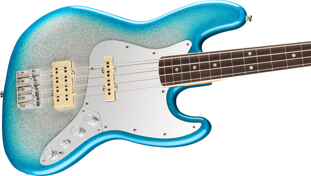 A breakout star, Blu DeTiger has taken the music world by storm. Featured as the cover of the Forbes 30 Under 30 music list, she represents the next generation of pop music. Bringing her signature sound and style, Blu DeTiger teamed up with Fender to create the Limited Player Plus x Blu DeTiger Jazz Bass. With its vibrant Sky Burst Sparkle finish, lightweight ash body and custom pickups, this bass delivers the lively tone and one-of-a-kind style that Blu's millions of fans have come to love. • Chambered Ash Body • Sky Burst Sparkle Finish with Matching Painted Headstock • Custom Blu DeTiger Fireball Bass Humbucker and Player Plus Noiseless Jazz Bass Pickups • 18v Active Preamp With 3-Band Eq and Active/Passive Switch • 9.5” Radius Bound Rosewood with 7mm Pearl Dots and Vintage Tall Frets • Includes Deluxe Gig Bag • MFSKU 0149410376 • UPC 717669763213