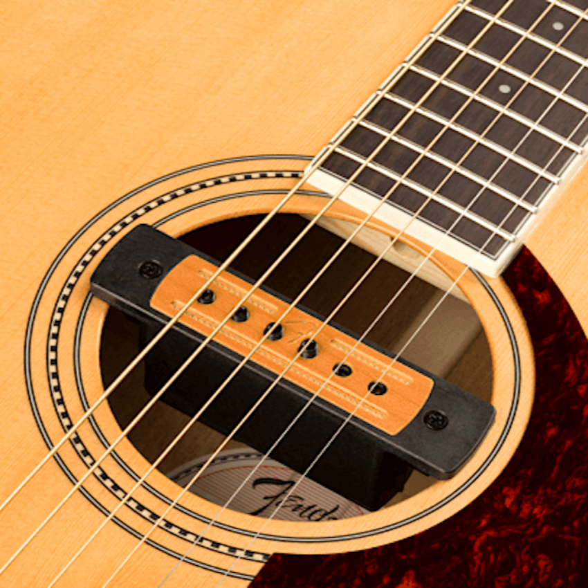 Add some heat to your acoustic performance with the Mesquite humbucking soundhole pickup. Designed by Tim Shaw, it’s engineered specifically for use with bronze guitar strings. The stack-coil design is compact and features individually adjustable pole pieces so you can personalize the output of each string. Ceramic magnets offer nuanced tonality and transparency that lets the guitar’s voice shine. Note: This pickup includes a short cable including an end-pin-mounted ¼” jack. We recommend installation by an experienced technician or luthier. • MFSKU 0992276000 • UPC 885978908776