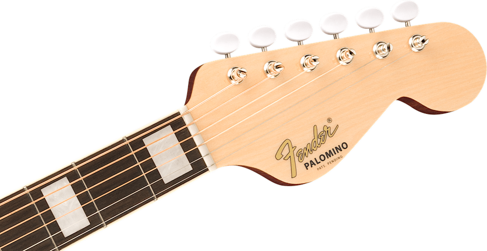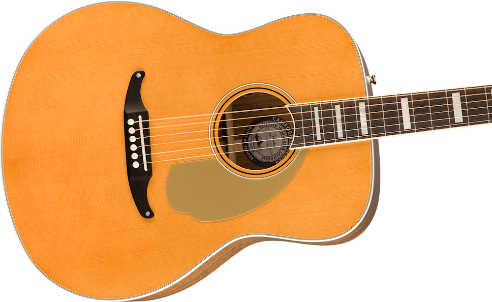 Vintage Aged-Natural with engineered with an innovative X bracing pattern, the mid-size auditorium body of the Fender California Vintage Palomino is lightly crafted with a solid Sitka spruce top and solid ovangkol back and sides to efficiantly produce a versatile, articulate voice with exceptional detail, clarity and balance. An ergonomic modern "V" profile was chosen for the the okoume neck along with a 25.5" scale length for optimal sustain, and a tilt-back 6-in-line headstock with a maple headcap for a distinctive look born from Fender's electric guitar DNA. Notable details include a bound ovangkol fingerboard with pearloid block inlays for a retro look, vintage-style tuning machines for smooth, accurate tuning, and a bone nut and saddle for superior harmonic character. Harmonic Characyer!! Designed for the performer, the onboard Fishman Presys VT Plus preamp system features seamless soundhole-mounted controls that blend an undersaddle piezo and internal body transducer to allow faithful and reliable reproduction of the guitar's natural sound when plugged into an amplifier or recording device. A vintage-style hardshell case is included! • MFSKU 0971042334 • UPC 717669923808