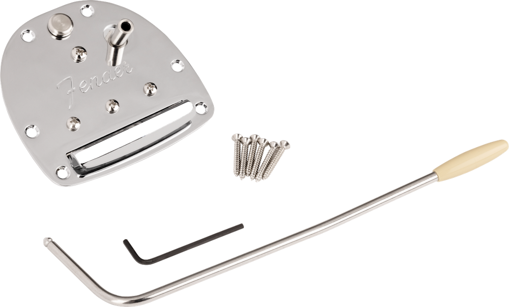 The Panorama Tremolo system with pop-in tremolo arm dramatically increases the range of vibrato available, allowing for deep, Strat-style dives, in addition to classic Jazzmaster warble. Developed for the American Professional II Jazzmaster, this tremolo system will retrofit into most of the Jazzmaster models that Fender has created over the decades. Pair it with the American Pro Jazzmaster/Jaguar bridge assembly for the ultimate upgrade to your favorite Jazzmaster. • MFSKU 0992071000 • UPC 885978958689