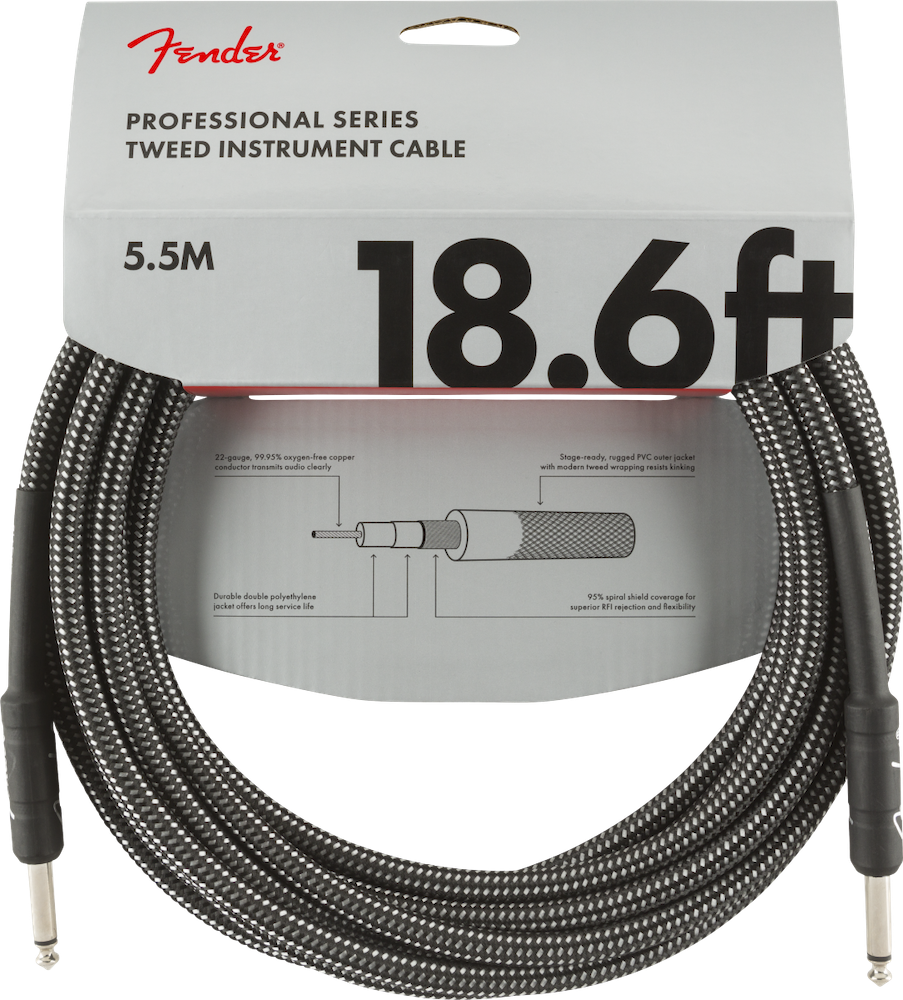 Fender Professional Series 18.6 Foot Gray Tweed Instrument Cable