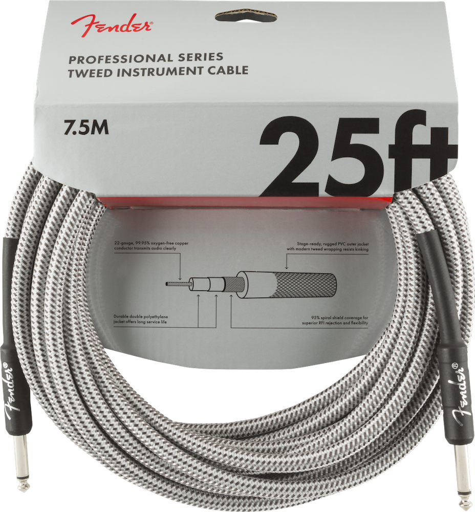 Fender Professional Series 25 Foot White Tweed Instrument Cable
