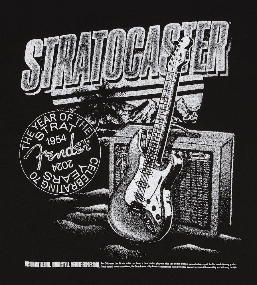 Fender is introducing the 70th anniversary Stratocaster T-shirt. Just like your Stratocaster guitar the T-shirt will be a favorite among Fender players and fans worldwide. • Black • Large • MFSKU 9101292597 • UPC 885978233304