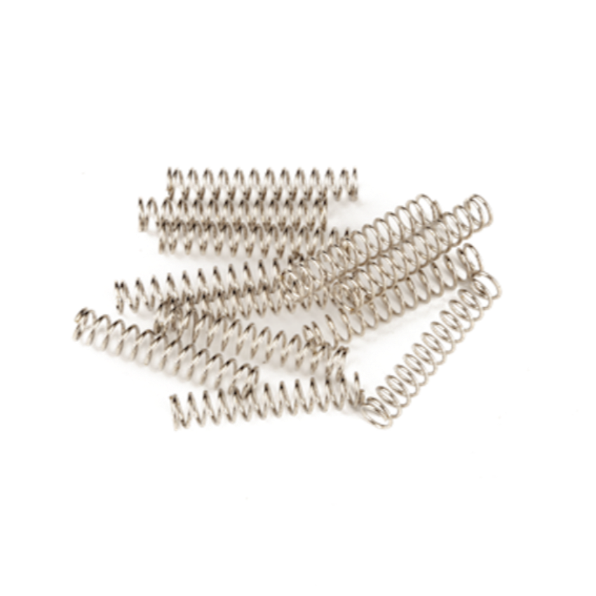 • Set of 12 (1 x 1/16") replacement intonation springs. • Nickel plating • Used in many vintage-style Fender bridge assemblies • Fits American Vintage and Classic Series Telecaster, Precision and Jazz Bass bridge assemblies (1986-Present). Can also be used on humbucking pickups for Showmaster, Jaguar HH and other Fender instruments. • MFSKU 0018689049 • UPC 717669069278