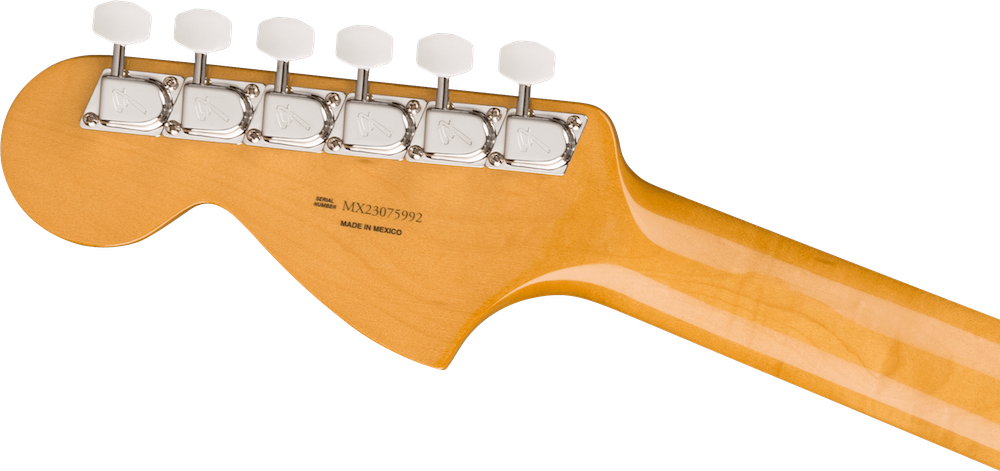 Revive the timeless sound of the '70s with Competition Striping! The Vintera II '70s Competition Mustang features an alder body and a maple neck with rosewood fingerboard for classic Fender tone that's full of punch and clarity. The early-'70s "C"-shape neck is based on a classic '70s profile for an intuitive and inviting feel, while the 7.25" radius fingerboard with vintage-tall frets provide vintage comfort with ample room for big bends and expressive vibrato. Under the hood, the vintage-style '70s single-coil pickups deliver all the sweet and sparkling, warm and woody tone that made Fender famous. The vintage-style Mustang "floating" tremolo lets you dive and wail with abandon, while "F"-stamped tuning machines provide classic looks and enhanced tuning stability to complete the package. Get ready to rock! • MFSKU 0149130320 • UPC 717669920333