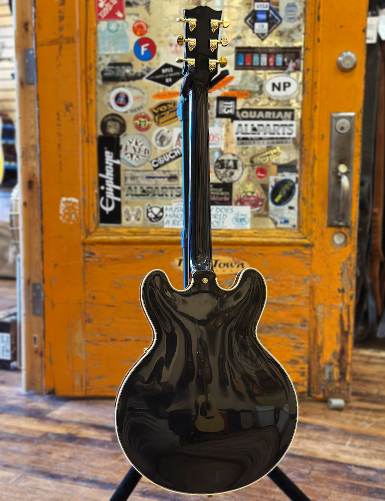 Equipped with the retro Stop Bar tailpiece, the ES-355 Reissue offers utmost resonance and sustain, making your notes sing with precision and depth. The ebony fretboard with mother of pearl inlays and gold hardware add a touch of elegance, enhancing the look of the guitar as much as its sound.