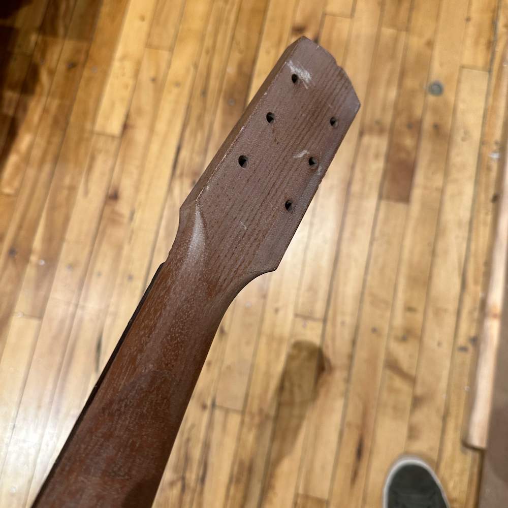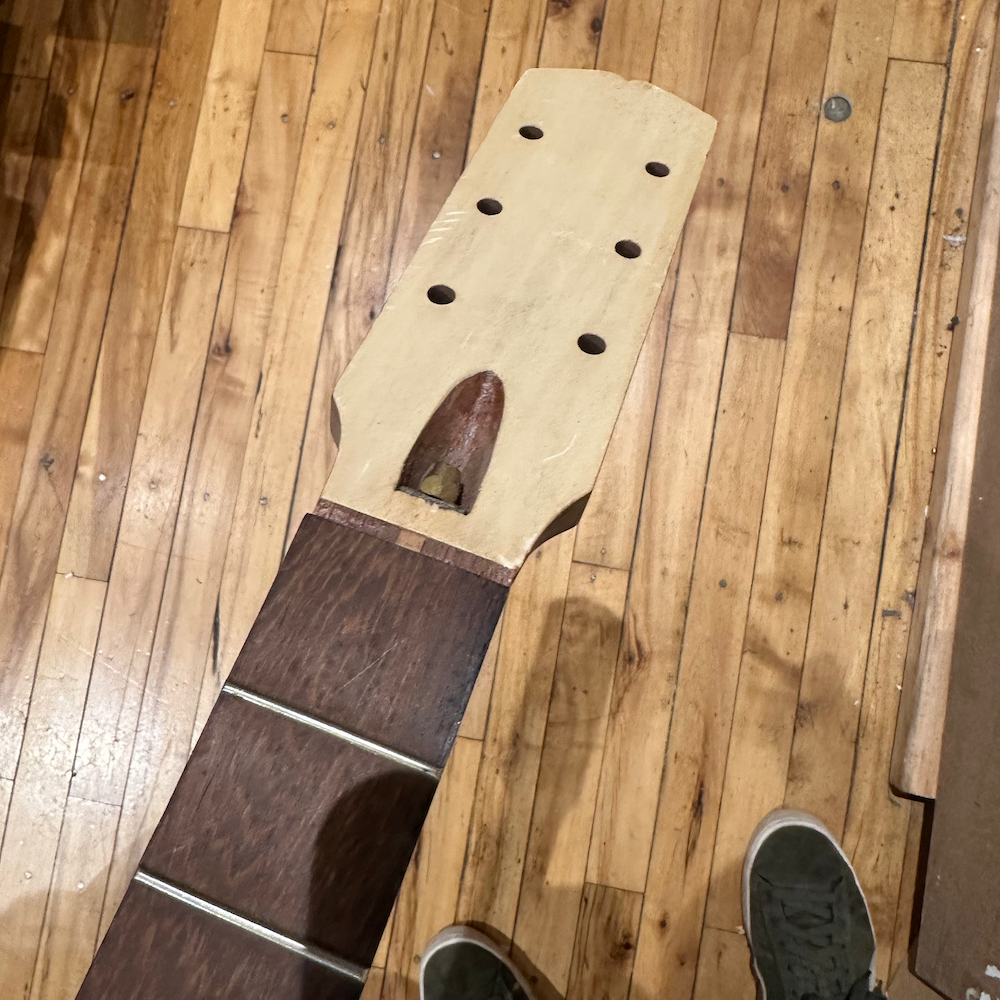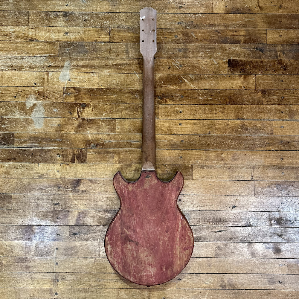 We think it's around a 1965 or so, double cut double pickup'd with some tuff pickup cavity mods, mono bridge.. survivor. A scarf joint replaced under the last three frets and headstock. Solid!
