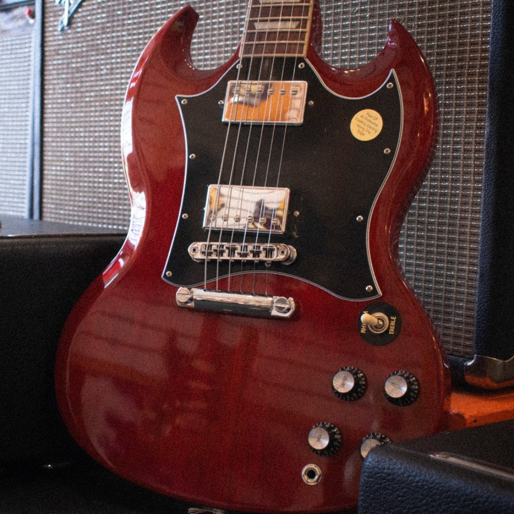 Unleash the timeless roar of the Gibson SG Standard Heritage Cherry Electric Guitar—a true icon that embodies the classic looks and features reminiscent of the late '60s SG models coveted by enthusiasts worldwide. This guitar stands as a testament to Gibson's commitment to delivering uncompromising tone and playability. The rounded profile mahogany neck, bound rosewood fingerboard, and a long tenon 19th fret neck joint create a solid foundation for unrivaled singing sustain. The solid mahogany body not only adds to the guitar's resonance but also pays homage to the heritage of the SG series. Empowered by the 490R and 490T Alnico II pickups, this SG Standard delivers the powerful drive and tonal versatility that musicians crave. Whether you're exploring searing solos or driving rhythms, these pickups respond with clarity and dynamism. • MFSKU SGS00HCCH1 • UPC 711106035628