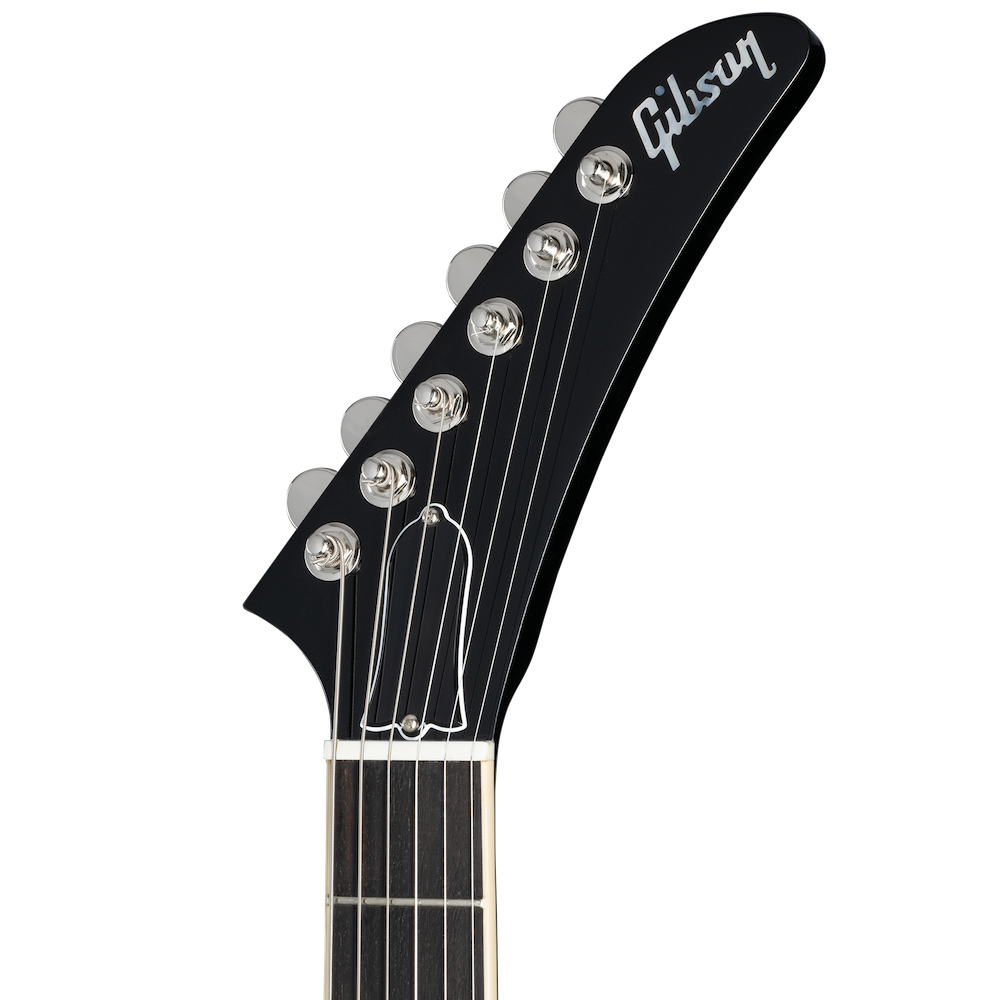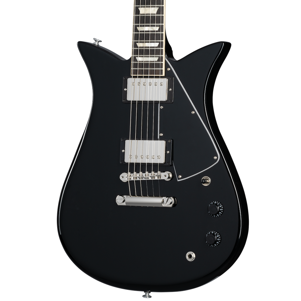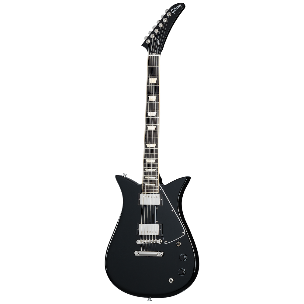 Developed from original drawings discovered in the Gibson Archives, the Gibson Theodore Standard is based on a design from 1957 that was only previously available as a limited edition 2022 Gibson Custom model. Its features include a mahogany body, scimitar headstock with Grover Mini Rotomatic tuners, and double Florentine cutaways that provide unimpeded access to all 22 frets on the rosewood-capped, SlimTaper mahogany neck. The balanced construction is exceptionally comfortable, and the powerful ’57 Classic and ’57 Classic Plus humbucker pickups produce effortless sustain and a rich diversity of tones. It's in Ebony! A hardshell case is also included. • MFSKU THS00EBNH1 • UPC 711106129600