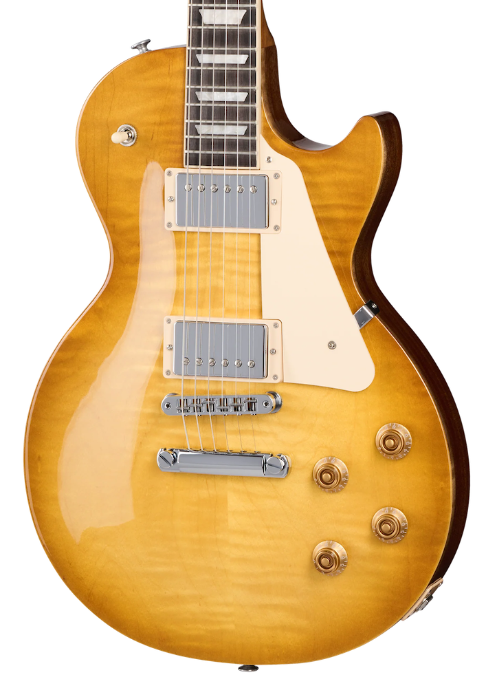 The Gibson Les Paul Studio Session in Honey Burst refines the classic Studio with premium upgrades designed for modern players. Its Ultra-Modern weight-relieved mahogany body features a stunning AA figured maple top that adds visual flair and enhances tonal clarity. A SlimTaper mahogany neck with a bound ebony fingerboard and contoured heel ensures fast, comfortable playability and easy upper fret access. Equipped with ’57 Classic pickups in the neck and ’57 Classic Plus in the bridge, this guitar delivers rich, vintage-inspired PAF tones with modern versatility. Push/pull controls offer coil-splitting, phase reversal, and pure bypass options, expanding your sonic palette. Finished with Grover Rotomatic tuners and comes with a soft shell case for protection. • MFSKU LPSTAA01HBCH1 • UPC 711106160801