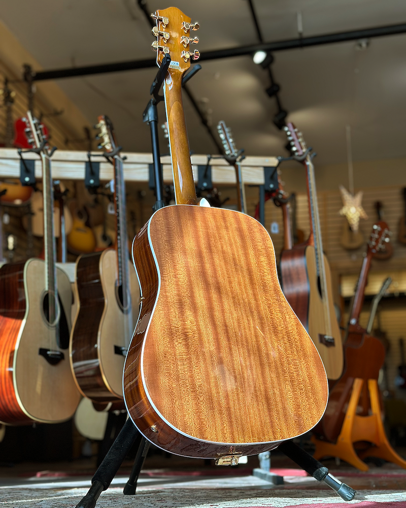 The G5034TFT Rancher dreadnought is one of the most distinctive Rancher models ever, with a sweet iso-chamber mounted Fideli’Tron pickup for great amplified tone and performance and a Bigsby B70G tailpiece with a “wire” trem arm. Other premium features include a laminated spruce top, arched laminated mahogany back, laminated mahogany sides, classic Rancher bound triangular sound hole, mahogany neck, 16-fret rosewood fingerboard with Neo-Classic thumbnail inlays, volume control, rocking bar bridge with rosewood base, deluxe tuners, and gold-plated hardware. • Savannah Sunset • UPC 885978132706 • MFSKU 2704034522