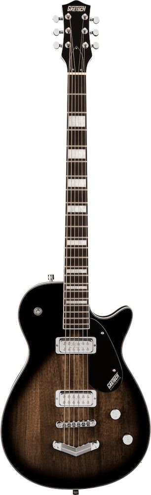 The Gretsch Electromatic Collection gives you essential Gretsch power, style and performance. These are the guitars that will get you to the big stage — Play Proud. The G5260 Electromatic Jet Baritone with V-Stoptail captures essential Jet power and fidelity at sub-sonic levels. The Jet Baritone rattles foundations with dual Gretsch mini humbucking pickups that capture thundering lows while retaining a piano-like articulation and definition for intoxicating sonic size and width at every level of gain. Simple tone-shaping is provided by a three-position toggle switch as well as master volume and master tone controls. An elongated 29 ¾”-scale accommodates lower tunings without loss of string tension, while the sturdy bolt-on maple neck is topped with a comfortable 12”-radius laurel fingerboard featuring 22 medium jumbo frets. Other premium features and appointments include an anchored Adjusto-Matic bridge, pearloid Big Block inlays, white binding with purfling and chrome hardware. • MFSKU 2516002526 • UPC 717669554309