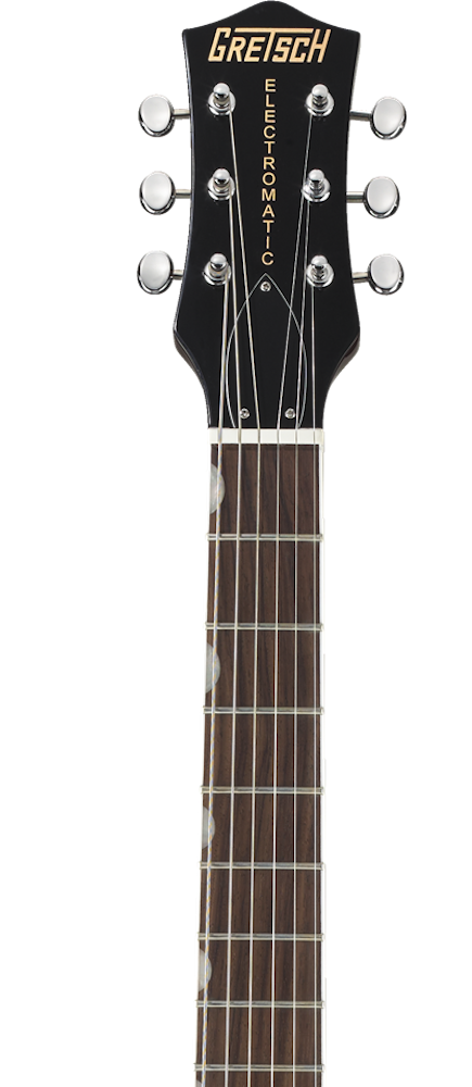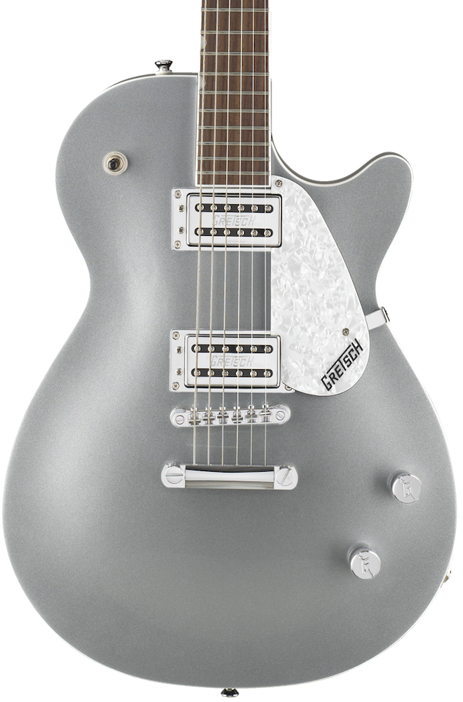 Are you in the club? The G5425 Jet Club has a single-cutaway chambered basswood body with an arched maple top that truly resonates with That Great Gretsch Sound!. Features include Gretsch dual-coil humbucking pickups that ensure luscious tone, 22 medium jumbo frets, anchored Adjusto-Matic™ bridge and stop tailpiece that ensure vibrant sustain, Neo-Classic “thumbnail” fingerboard inlays, “G-Arrow" knobs and white pearloid pickguard with Gretsch logo. • MFSKU 2519010547 • UPC 885978095568