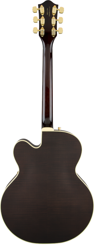 All of the '59 Gent's classic features are here - laminated 5-ply figured maple top with painted F-holes, "wire" vibrato arm, gold G-arrow control knobs, aged white binding with black purfling, gloss nitrocellulose lacquer finish, aged pearloid thumbnail inlays, gold vintage thick plexi pickguard with Gretsch logo and gold Grover® Imperial™ tuning machines with 'butterbean' buttons. A truly classic instrument with refined style and sound, the G6122T-59 Vintage Select Edition '59 Chet Atkins® Country Gentleman® Hollow Body with Bigsby® is a fine addition to any guitarist's collection.