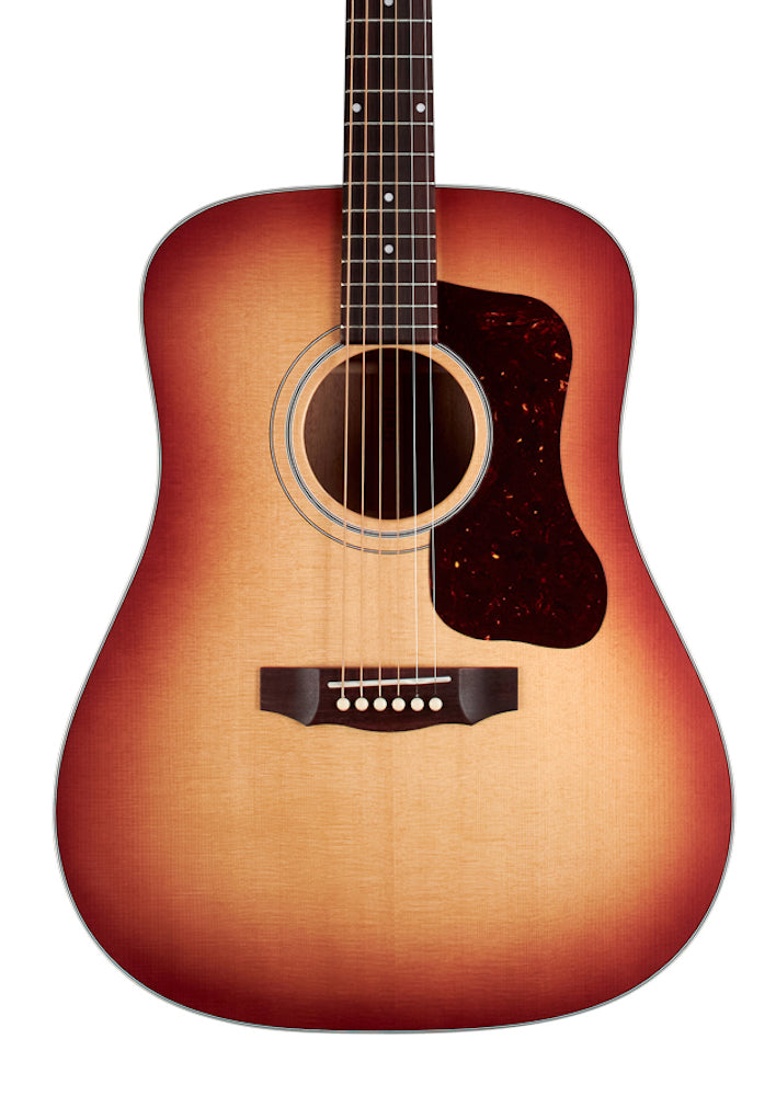 This new iteration of the D-40 Standard provides the ultimate dreadnought sound. With it’s solid Sitka Spruce top with solid African Mahogany back and sides, the D-40 Standard serves up remarkable volume, clarity, and sustain that’s perfect for anything from vocal accompaniment to solo work, and many other “unplugged” applications. The D-40 Standard manifests vintage charm with timeless appointments such as a tortoiseshell celluloid pickguard, white ABS binding, and Guild’s peak logo inlay on the headstock.