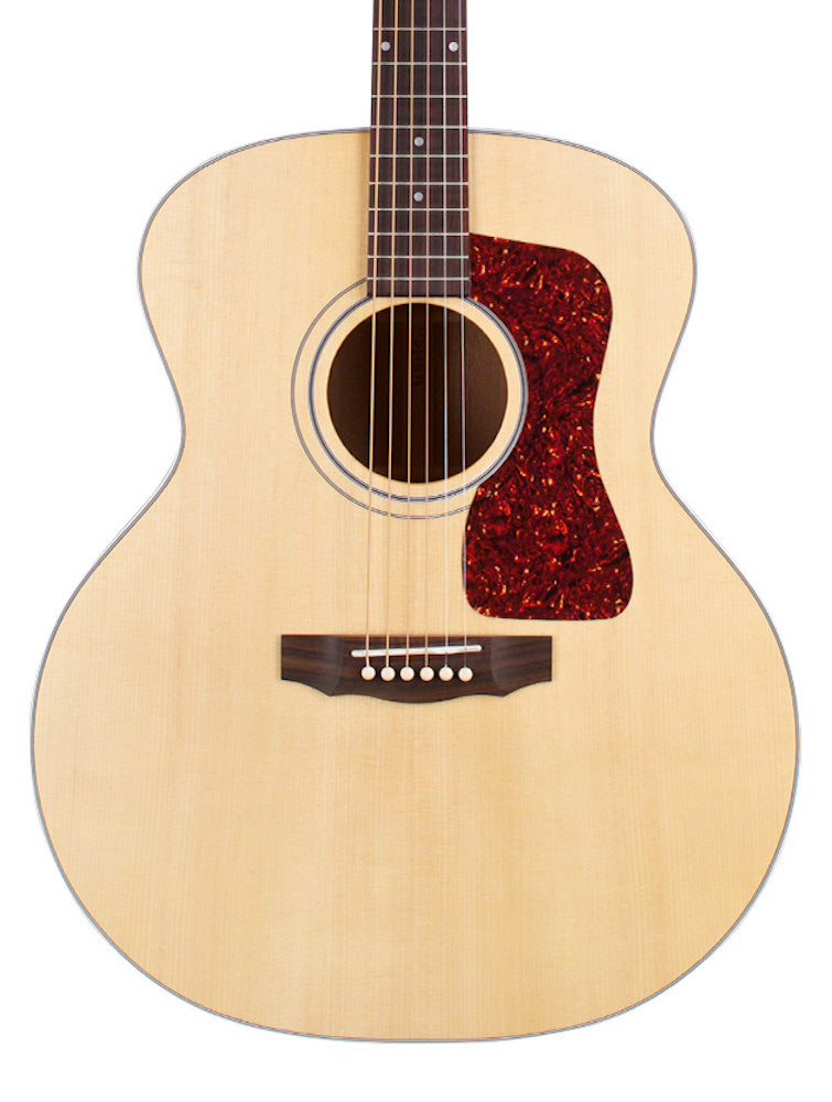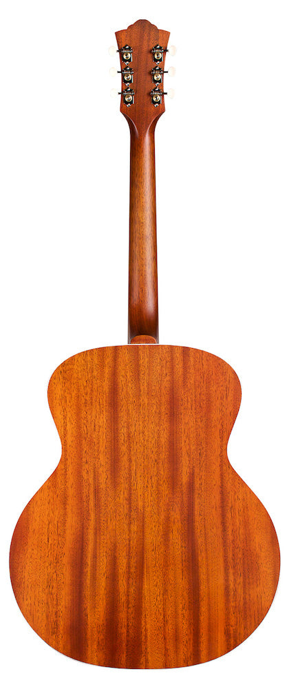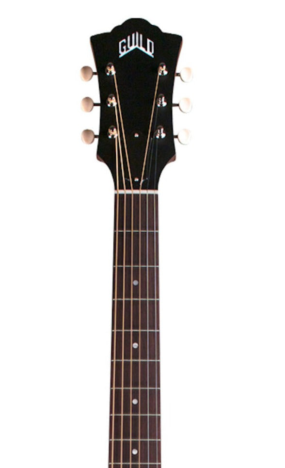 Achieve incredible clarity, balance and volume with our jumbo-shaped F-40, made in Southern California. Featuring a solid Sitka spruce top and solid African mahogany back and sides, this jumbo acoustic checks all the boxes for players who prize outstanding projection and enhanced mid-range. Its predecessor, the F-48 Navarre, was only produced from 1972 to 1976 and original versions are a rare treasure. Today’s reissue manifests the same vintage charm with timeless and tasteful appointments such as a tortoiseshell pickguard, white ABS binding, and Guild’s peak logo inlaid on the headstock. Premium materials such as an East Indian rosewood bridge and fingerboard, 20:1 open-gear tuners, and a hand-cut bone nut and saddle all match today’s standards for fine acoustics. A satin varnish finish gives this guitar its familiar broken-in look and feel, while allowing the tone woods to “breathe” and reach their sonic potential. Each F-40 ships with a Guild archtop wood case with a built-in Humicase® humidification system. Finish options include satin varnish in Natural, or Antique Burst with Cabernet back, sides and neck. A discreet, USA-made LR Baggs Element VTC pickup is also available (F-40E). • MFSKU 385-3404-821 • UPC 809870305518