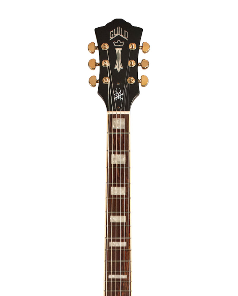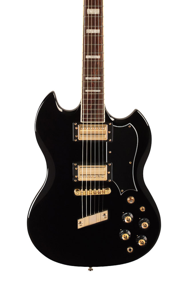 Honoring the long-standing legacy of Soundgarden’s 1991 album, “Badmotorfinger” and their 2012 album, “King Animal,” these symbols are quintessentially grunge and pay tribute to Kim and his band mates. Additional features include a bound Rosewood fingerboard with Pearloid block inlays, Tune-o-Matic bridge & compensated stopbar tailpiece. Available in a Black gloss finish with gold hardware. • MFSKU 379-1190-806 • UPC 809870310451