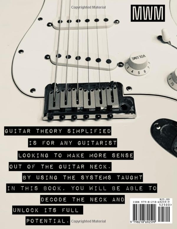 Learn the essential systems of the guitar from a teacher who has taught thousands of private lessons! Unlock the fretboard with a method that’s clear, practical, and designed for real-world playing — not abstract theory. Guitar Theory Simplified breaks down the concepts every guitarist needs to know and shows you how to apply them instantly to songs, improvisation, and songwriting. Whether you're self-taught or classically trained, this book will help you understand the guitar in a way that finally makes sense. With thousands of private lessons taught, Mark Wade knows where guitarists get stuck — and how to get them over the hump quickly. Each concept is broken down into simple steps, with examples that you can immediately use in your everyday playing. What You’ll Learn: How the fretboard is organized — scales, intervals, and patterns that repeat everywhere - The major systems guitar players rely on, including CAGED, octave patterns, and pentatonics - How chords actually work, so you can build, modify, and substitute them confidently - How to connect pentatonic scales and chord shapes to unlock fluid improvisation - Why certain chords and shapes sound good together — Practical approaches that help you remember theory through hands-on playing. This book is perfect for: Beginner and intermediate guitarists - Players who learned by ear and want to connect the dots - Songwriters and producers - Anyone who wants a clear, practical foundation in guitar theory. You’ll walk away with a deeper understanding of the instrument and a toolkit that makes you a more confident and creative guitarist! ISBN 13: 979-8218692599