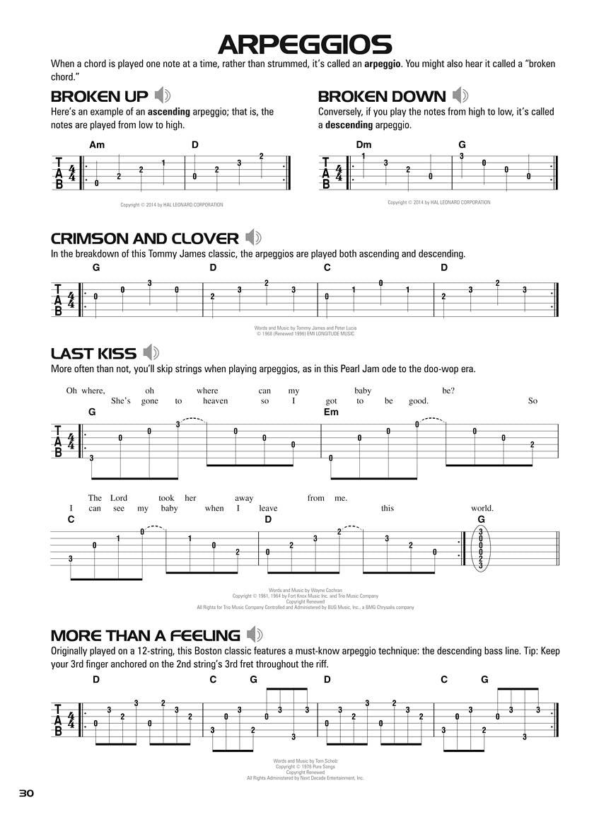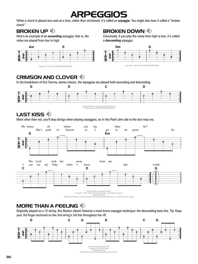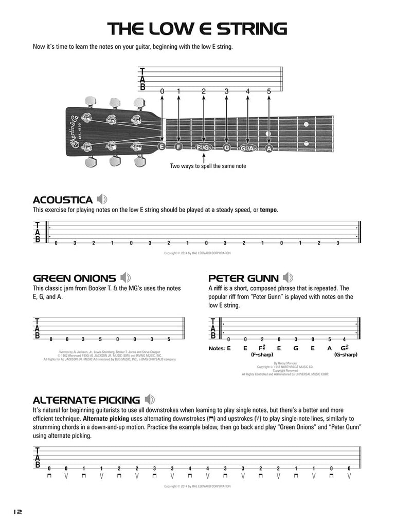 Learn chords with songs like “Eleanor Rigby” and “Knockin' on Heaven's Door,” single notes with riffs and solos by Nirvana and Pink Floyd, arpeggios with classics by Eric Clapton and Boston, and much more. The method's unique, well-paced, and logical teaching sequence will get students playing more easily than ever before, and music from popular artists like the Eagles, Johnny Cash and Green Day will keep them playing and having fun. Book 1 includes: parts of the guitar, easy-to-follow guitar tablature, notes & riffs starting on the low E string, tempo & time signatures, strumming patterns and arpeggios, slides and slurs, hammer-ons and pull-offs, many music styles, nearly 100 riffs and songs, audio demos of every example, and more! • MFSKU HL00124197 • UPC 884088964542