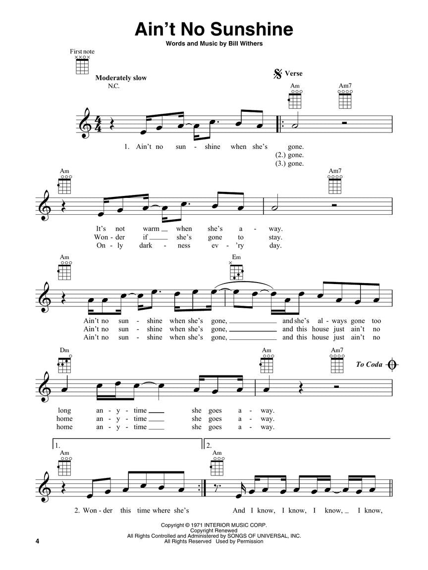 If you're new to the ukulele, you're probably eager to learn some songs! This book features favorites in standard G-C-E-A tuning with melody, lyrics, and chord diagrams that beginning players want to strum and sing. Songs include: Ain't No Sunshine • All You Need Is Love • California Dreamin' • Demons • Drift Away • Have You Ever Seen the Rain? • Knockin' on Heaven's Door • Last Kiss • Margaritaville • My Girl • Perfect • The Sound of Silence • Wake Me Up • When Will I Be Loved • and more. • MFSKU HL01255559 • UPC 196288156017