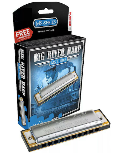 Whether you're playing down-home melodies on your back porch or fronting a blues band, the 590 Big River harmonica gets the job done. This reliable workhorse offers Hohner's highest standard of German quality. Featuring a 10-hole, airtight, plastic body for increased volume, an open-ended cover for sound projection, and contoured covers that are comfortable to hold, the Hohner 590 Big River harmonica really delivers the sound you seek. The Hohner 590 Big River harmonica is an attractive and robust harp model that's a fine musical instrument for beginners, with solid volume and easy playability. The 590 Big River is also the choice of seasoned veterans and professionals, who recognize the harmonicas strong, dependable performance and German quality at an affordable price. The Hohner Big River can be called one of the best-valued harmonicas on the market. • MFSKU 590BX-A • UPC 190786081345