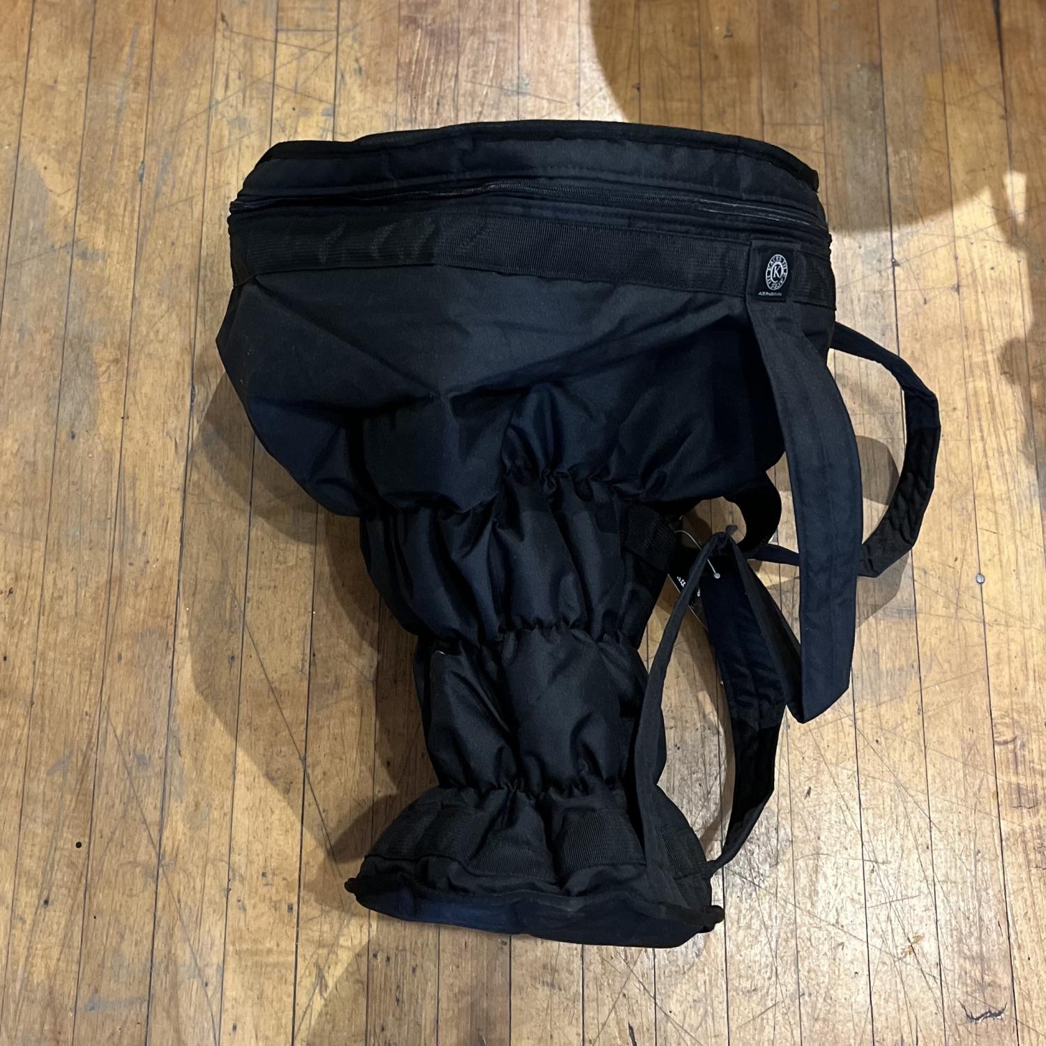 This used djembe gig bag hit djembes up to 14" in diameter. Equipped with backpack straps, in very good condition.