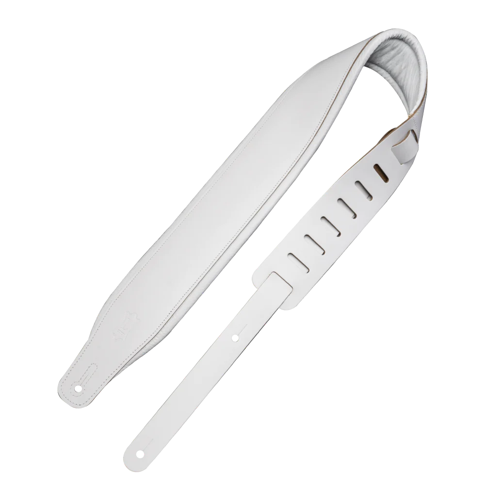 The Levy's M26PD-BLK_WHT Favorite Padded Two-Tone Black and White Leather Guitar Strap combines style and comfort for discerning guitarists. Crafted from high-quality leather, this strap features an eye-catching two-tone design in black and white, adding a touch of sophistication to your stage presence. The padded construction ensures optimal comfort during long playing sessions, reducing shoulder fatigue. With an adjustable length, this strap accommodates players of all sizes, providing a custom fit. Whether you're practicing at home or performing on stage, the Levy's Favorite Padded Two-Tone Guitar Strap offers durability, style, and comfort for every guitarist. 3 inch Top Grain Leather Guitar Strap in White With 1/4 inch Foam Wrapped In White Garment Leather. Ladder Style Adjustment From 37 to 51 inches. • Levy’s 3 inch white top grain leather guitar strap with foam padding wrapped in white garment leather. • Ladder style adjustment ranges from 37 inches to 51 inches. • Best selling guitar strap. • Handcrafted in Nova Scotia, Canada • MFSKU M26PD-WHT_WHT • UPC