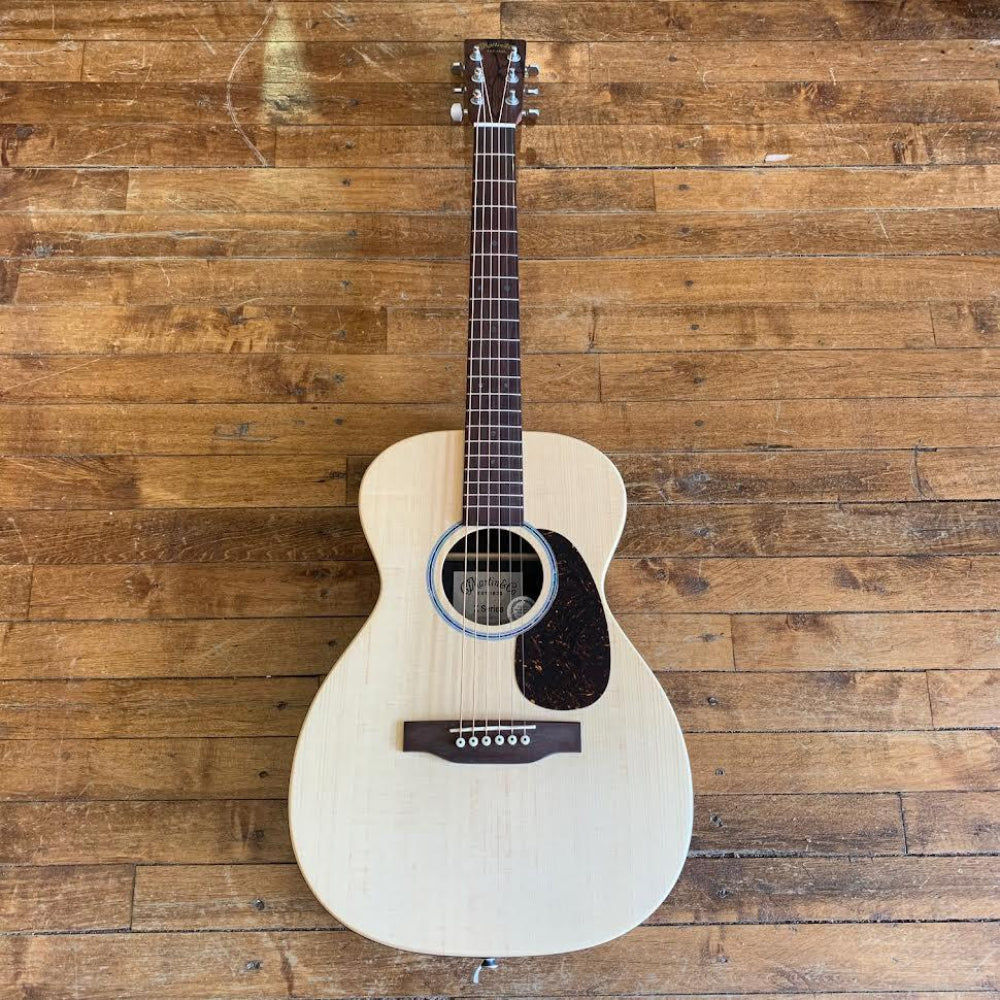 The re-mastered X Series is made to play. The 0-X2E Cocobolo is a small body acoustic-electric featuring a hand-rubbed satin spruce top with an elegant abalone pattern rosette and eye-catching cocobolo pattern high-pressure laminate (HPL) back and sides for added durability and looks, without sacrificing that classic Martin tone. Playability enhancements include a thinner fingerboard with a gently beveled comfort edge and refined string spacing, and a modernized bridge contour for a smooth and comfortable playing experience. It also features a select hardwood neck, fingerboard, and bridge for improved sound and sustain, and Martin E-1 electronics with a built-in chromatic tuner and volume, tone, and phase controls. The 0-X2E Cocobolo provides clear, crisp trebles with delicate bass, unplugged or plugged in, letting you play how you want, wherever you want. All X Series models come with a softshell case. • MFSKU 110X2ECOCO • UPC 729789666770