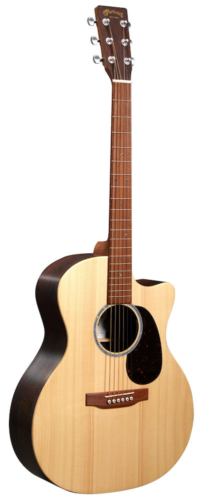 The remastered X Series is made to play. The acoustic-electric GPC-X2E features a hand-rubbed satin wood top and eye-catching high-pressure laminate (HPL) back and sides patterns—cocobolo with a spruce top or ziricote with a sapele top—for added durability and looks, without sacrificing that classic Martin sound. Playability enhancements include a thinner fingerboard with a gently beveled comfort edge and refined string spacing, and a modernized bridge contour for a smooth and comfortable playing experience, while its Grand Performance body size provides a projective, balanced tone with added bass, and a cutaway helps you reach the highest frets. The GPC-X2E also features an elegant abalone pattern rosette, select hardwood neck, fingerboard, and bridge, and Martin E-1 electronics with a built-in chromatic tuner and volume, tone, and phase controls, letting you plug in and play at any volume. All X Series models come with a softshell case. • MFSKU 11GPCX2ECOCO • UPC 729789666855