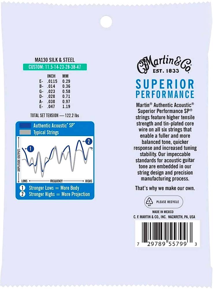 C.F. Martin Guitars MA130 Silk & Steel Custom Light Acoustic Guitar Strings .0115 -.047