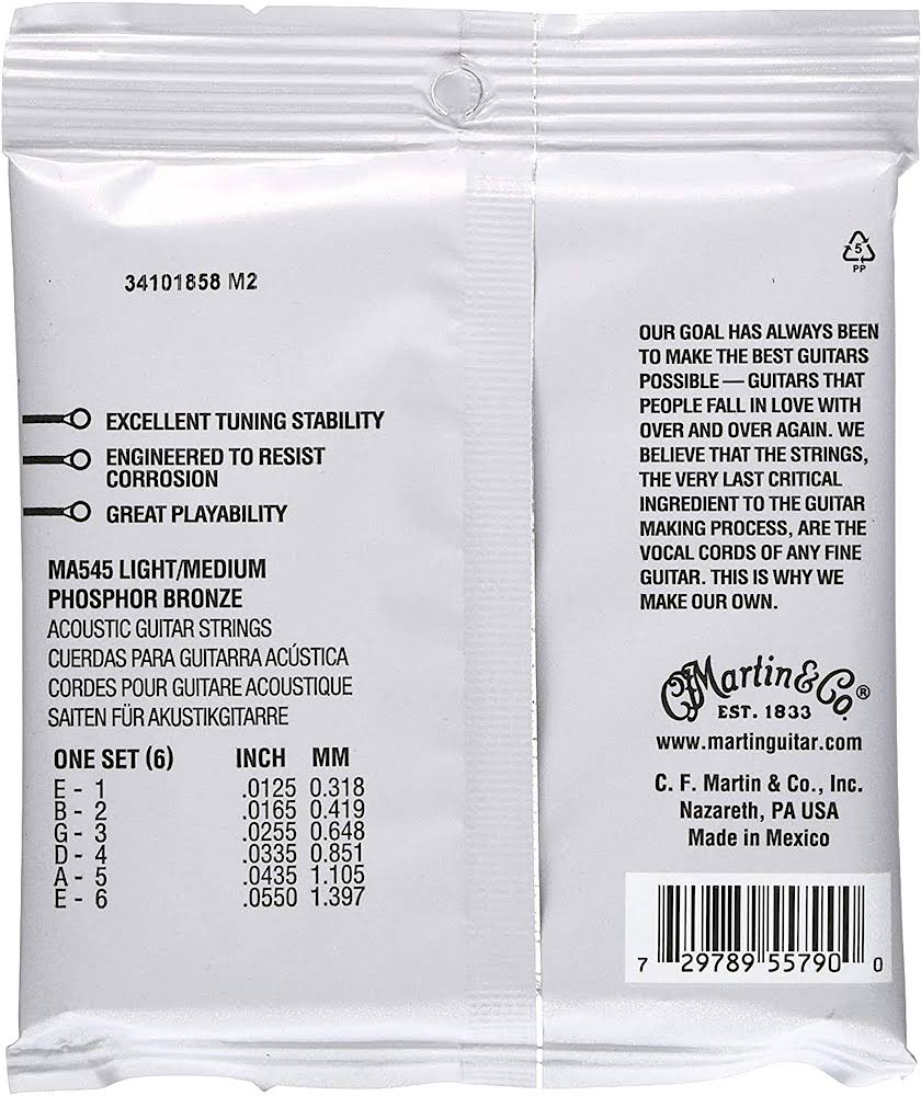 C.F. Martin Guitars MA545 SP Light/Medium Phosphor Bronze Acoustic Guitar Strings .0125 -.055