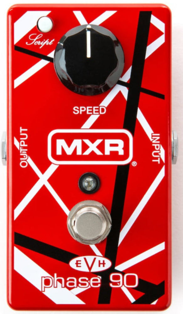 This pedal features both Script and Block style phasing with graphics inspired by Eddie Van Halen's legendary Frankenstein guitar. Script switch that lets you instantly toggle between a vintage, "Script Logo" phase tone and a more modern, in-your-face "Block Logo" phaser. This pedal can be powered by a 9-volt battery, a Dunlop ECB003 9-volt adapter, or the DC Brick, Iso-Brick, and Mini Iso-Brick. • MFSKU EVH90 • UPC 710137025400