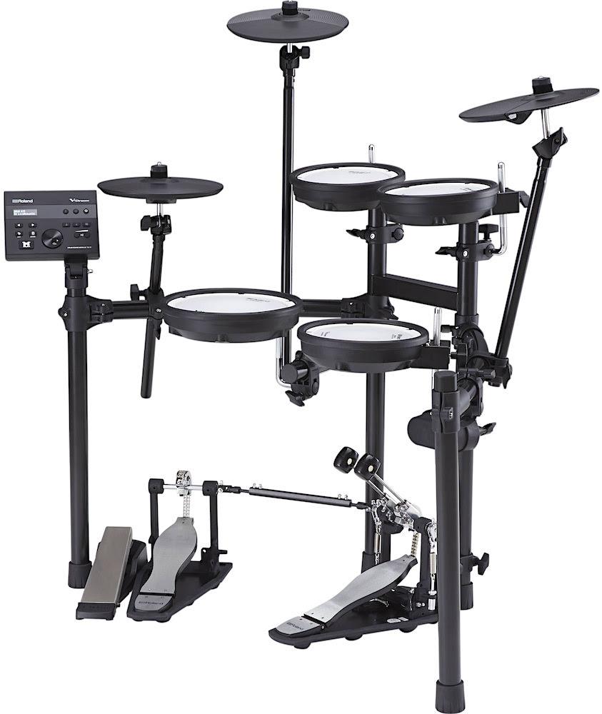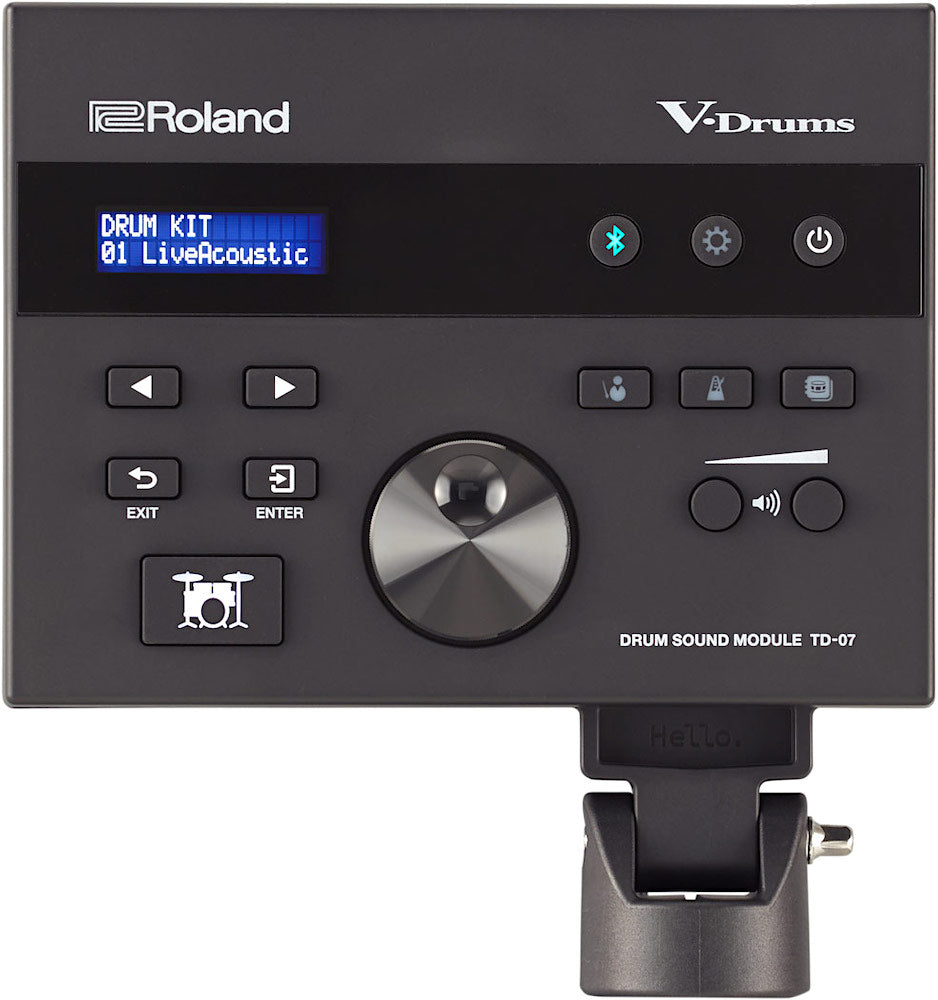 Compact and keenly priced—but with the professional tone, feel, and features to improve your drumming fast - the TD-07DMK is the entry point to the V-Drums TD-07 series. While the pads are smaller than the kits higher up the range, you’ll appreciate the satisfying feel from the PDX-8 snare and three PDX-6A toms, all featuring Roland’s ultra-quiet, double-ply mesh heads. The compact CY-5 crash and ride cymbals let you play with expression where space is tight, while a stand-mounted kick pad helps create the TD-07 range’s smallest footprint to make the perfect home kit. Despite the compact size, you can still think big thanks to creative features that stretch beyond any acoustic kit. Call up authentic drum kits covering a range of styles and genres, and use deep tone editing tools to customize sounds just how you like. There’s also an onboard Coach mode to help you learn, Bluetooth connectivity so you can play along with music streamed from your phone, tablet or computer, and USB to connect with computer-based recording software. • MFSKU TD-07DMK • UPC 761294518779