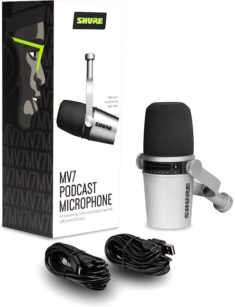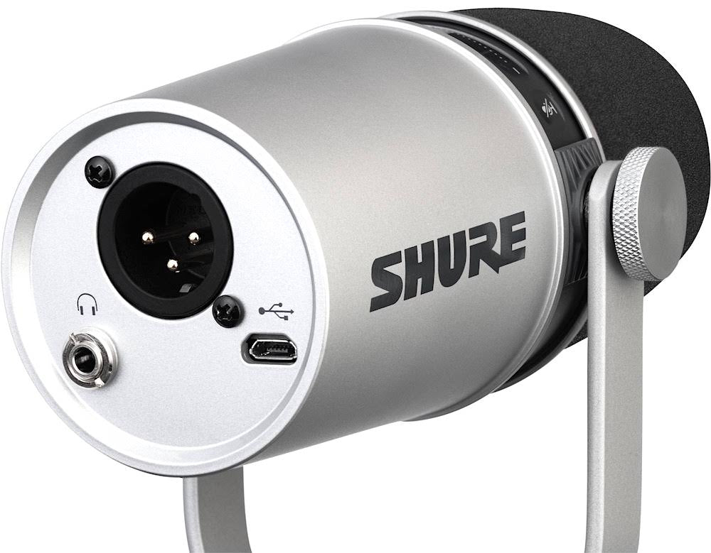 Inspired by the legendary SM7B, the MV7 is a dynamic microphone with both USB and XLR outputs for use with computers and professional interfaces alike. Connect via USB and explore additional set-up features and Auto Level Mode within the ShurePlus MOTIV app, to control your vocal tone, and distance from the microphone. With Auto Level Mode, you can let the microphone do the work for you. • MFSKU MV7-S • UPC 042406630818