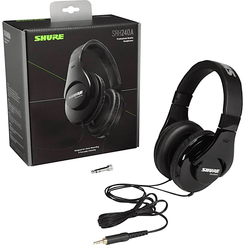 The SRH240 headphones from Shure provide excellent sound reproduction and comfort. With 40mm neodymium dynamic drivers optimized for general listening and monitoring, the SRH240 headphones reproduce deep bass with clear mids and highs. Impedance, power handling and sensitivity are all calibrated for connection to most consumer and professional audio devices. • MFSKU SRH240A • UPC 042406656535