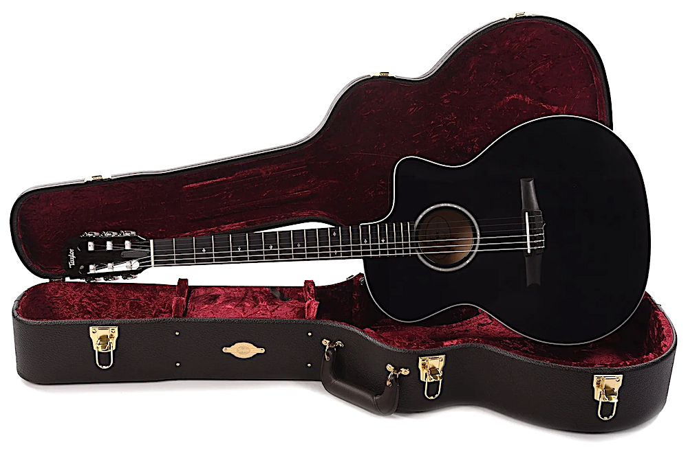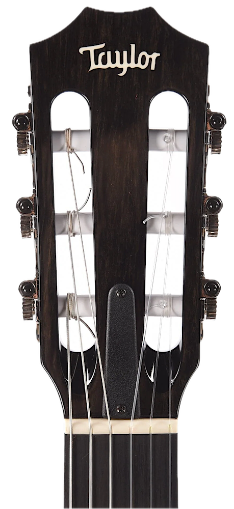 Experience warm, snappy tones and comfortable fretboards with Taylor's selection of nylon-string acoustic guitars. The 214ce-N BLK DLX Special Edition offers stage-ready visual appeal, featuring a glossy black finish with crisp white binding. Crafted with a solid Lutz spruce top and layered Big Leaf maple back and sides, it delivers punchy neo-classical sound with ample volume and rich projection. The narrow fretboard ensures easy fingerpicking and fretting without sacrificing comfort. Eye-catching details include an Italian acrylic rosette and diamond inlay scheme. Equipped with ES-N electronics, this cutaway Grand Auditorium guitar faithfully translates its tone in amplified settings. Complete with a hardshell case for maximum protection. • MFSKU 214ce-N DLX • UPC 887766121565