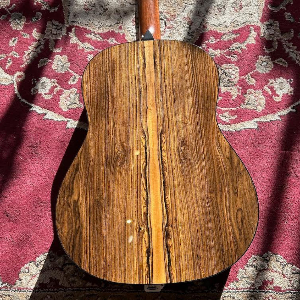 Torrefied Sitka Spruce/Bocote! This beautiful C17e is crafted with bocote back and sides and a torrefied Sitka spruce top, this custom Grand Pacific dreadnought offers rich tonal nuances and superb craftsmanship. Enhanced by Taylor's special roasting process, it delivers sweet, deep tones. Adorned with paua shell details, ebony binding, Gotoh 510 tuners, and a firestripe pickguard. Includes ES2 electronics and a Western Floral deluxe hardshell case. Deluxe!