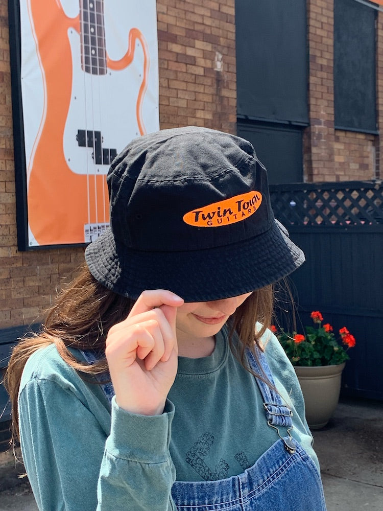 Twin Town Guitars Black Bucket Hat with Embroidered Orange Logo