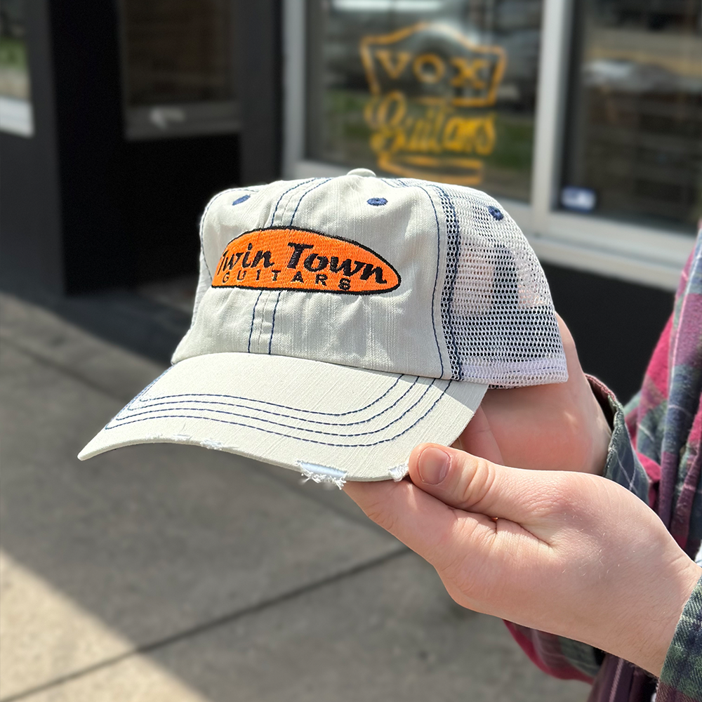 Whether you're hitting up music festivals, chilling at the beach, or simply cruising around town, elevate your summer look with our latest summer special – the Twin Town Guitars Distressed Baseball Cap! Designed for the ultimate rockstar vibe, this cap is all about combining style with comfort. With its rugged appearance, featuring rips and scratches, this cap exudes a laid-back, effortless vibe that's perfect for any music lover. Stay cool and comfortable all summer long with the breathable mesh back, ensuring you look and feel cool even on the hottest days. Whether you're hitting up music festivals, chilling at the beach, or simply cruising around town, this cap is guaranteed to turn heads and make a statement. Don't miss out – grab yours today before summer’s over!