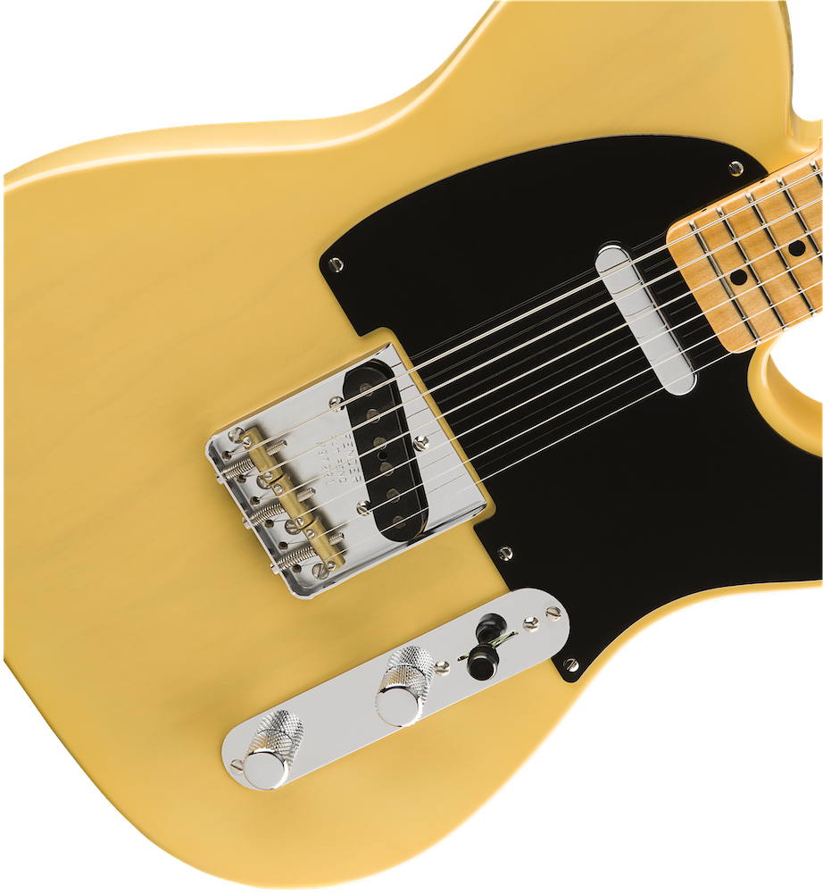 Before the Telecaster forever changed the world in 1951, Leo Fender built several prototype guitars, testing various concepts that found their way into the final result. The Vintage Custom 1950 Double Esquire is a faithful recreation of one of those early models, the incredibly rare dual-pickup Esquire, which was outfitted with some very cool and compelling appointments that we felt modern players and vintage tone hounds alike would appreciate. It features hand-wound '50-'51 Blackguard pickups offering incredibly fat and juicy tone, coupled with modified '51 Nocaster wiring and controls. You'll find a blender pot in place of a standard tone control and an additional resistor on the rhythm circuit for sweeter output. The neck features a vintage 7.25"-9.5" compound radius, which we found on some rare examples, giving it a unique feel even among vintage-inspired models. It also features medium vintage frets, which are slightly larger than vintage frets and very comfortable to play. Other features include a NOS flash-coat lacquer Nocaster Blonde finish, Closet Classic hardware, 2-piece off-center-seam ash body, tinted maple rift-sawn neck with 10/56 "V"-shaped neck profile, 21 medium vintage frets, 3-way switch, black phenolic pickguard, '51-'54 Tele bridge with brass saddles, bone nut, round string tree and vintage-style tuning machines. The historic precursor to an undisputed legend, the 1950 Double Esquire is a glimpse into the innovations that were pivotal in the development of the Telecaster. Includes a deluxe hardshell case, strap and Certificate of Authenticity.