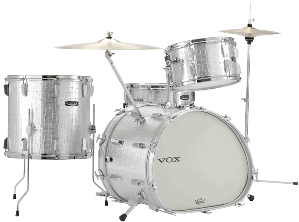 Crazy vintage vibe..! Rich sonic power! The VOX Telstar 2020 is a modern reimagining of an iconic VOX drum set from the 60s. One of the most interesting drum kits ever produced, it is now brought back to life with modern technology and produced under the supervision of SAKAE OSAKA HERITAGE. The Telstar 2020’s original and impactful design makes it a one of a kind drum set. With its uniquely shaped kick drum and its elegant crocodile-skin like finish, the VOX Telstar 2020 is visually arresting and will the attention of everyone in the audience! Every part of the VOX Telstar 2020 drum kit has been conceived and built referencing the high standards of the 60’s, and perfectly recreating the unique vintage looks to help you stand out! Not only that, the simplicity of the VOX Telstar 2020 makes this an easy-to-set-up and ready-to-play drum kit with surprising versatility. The original VOX drum sets from the 60s have been known to sell for thousands of dollars on the second-hand market, such is their unique appeal. Now a whole new generation of drummers can appreciate what makes the VOX Telstar 2020 so special. The Telstar not only looks amazing, it sounds great too! Made under the supervision and to the same high quality standards of the SAKAE OSAKA HERITAGE team, the Telstar 2020 is a carefully crafted drum kit with a rich sonic power. Its characteristic oval head was conceived following a revolutionary concept: What if you could have two different sized kick drums in one? The kick drum’s character, pitch and harmonics will vary depending on where it’s hit, giving you more possibilities and flexibility as a player! Its heads are made specially by REMO USA, legendary amongst drum head producers, assuring top-quality sound, quality, endurance, and availability. The set includes